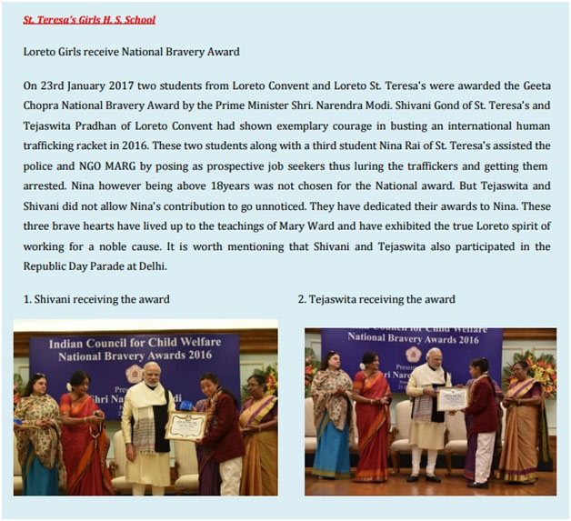 A special prayer service was conducted on 25 Jan 2017 to mark the Republic Day .The choir expressed gratitude to the Lord by singing a special hymn ‘O God our help in ages past’. In her address, the principal, Sr. Mercia, reiterated the need for all students to recommit themselves to the service of the nation. She also applauded the daring feat of two Loreto students from Darjeeling who have received the Geeta Chopra Bravery Award from the Prime Minister on Republic Day this year. They foiled the attempts of a gang at human trafficking. She implored the students to emulate and imbibe the values of integrity and courage. The programme culminated with the National Anthem.